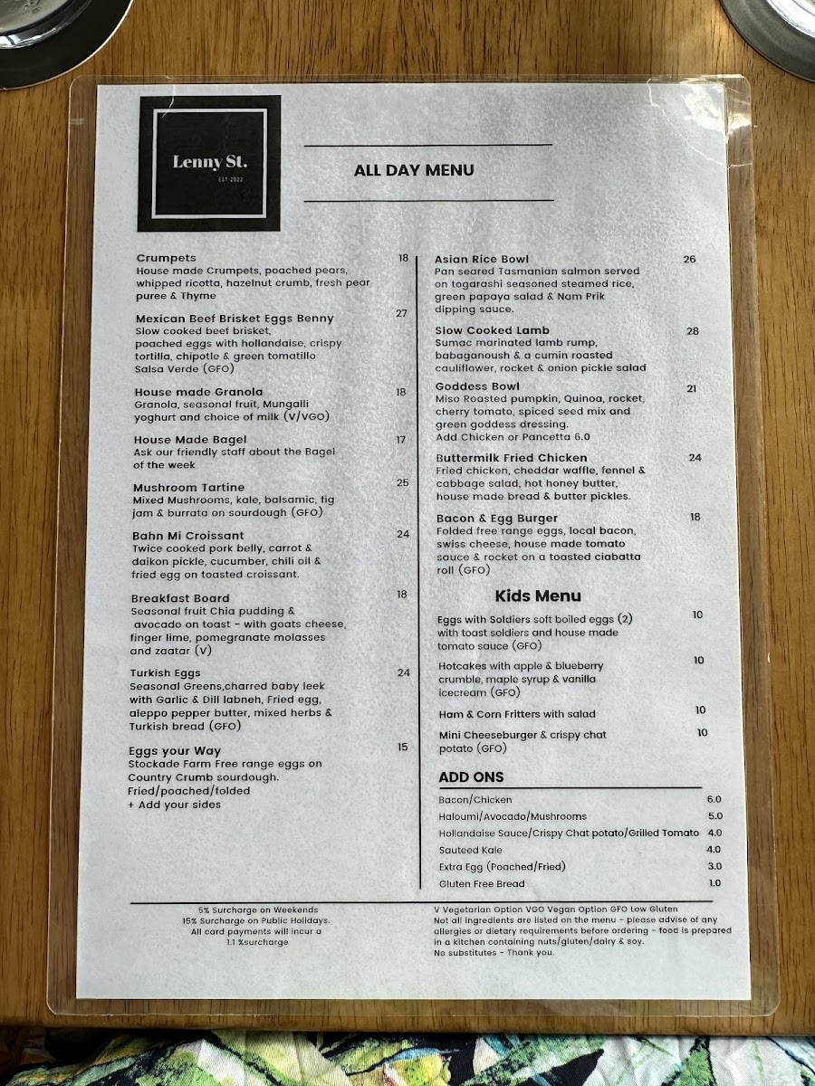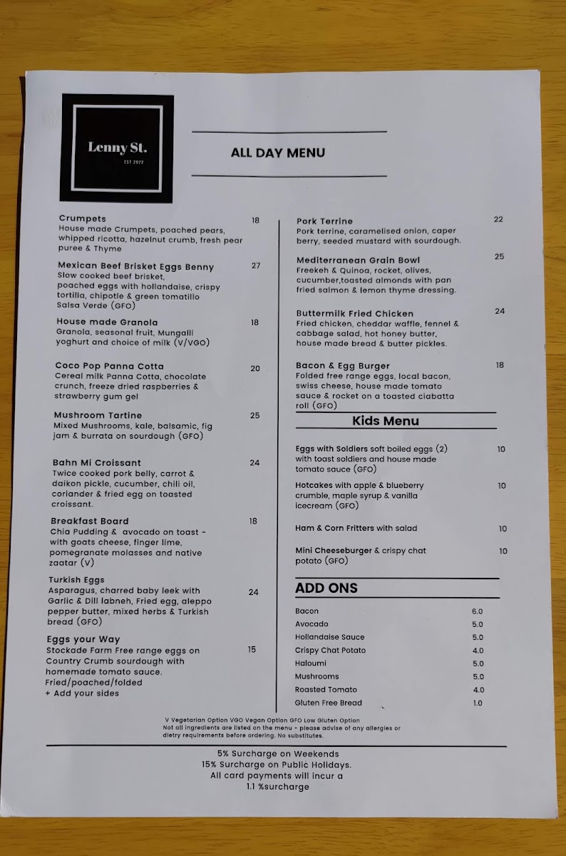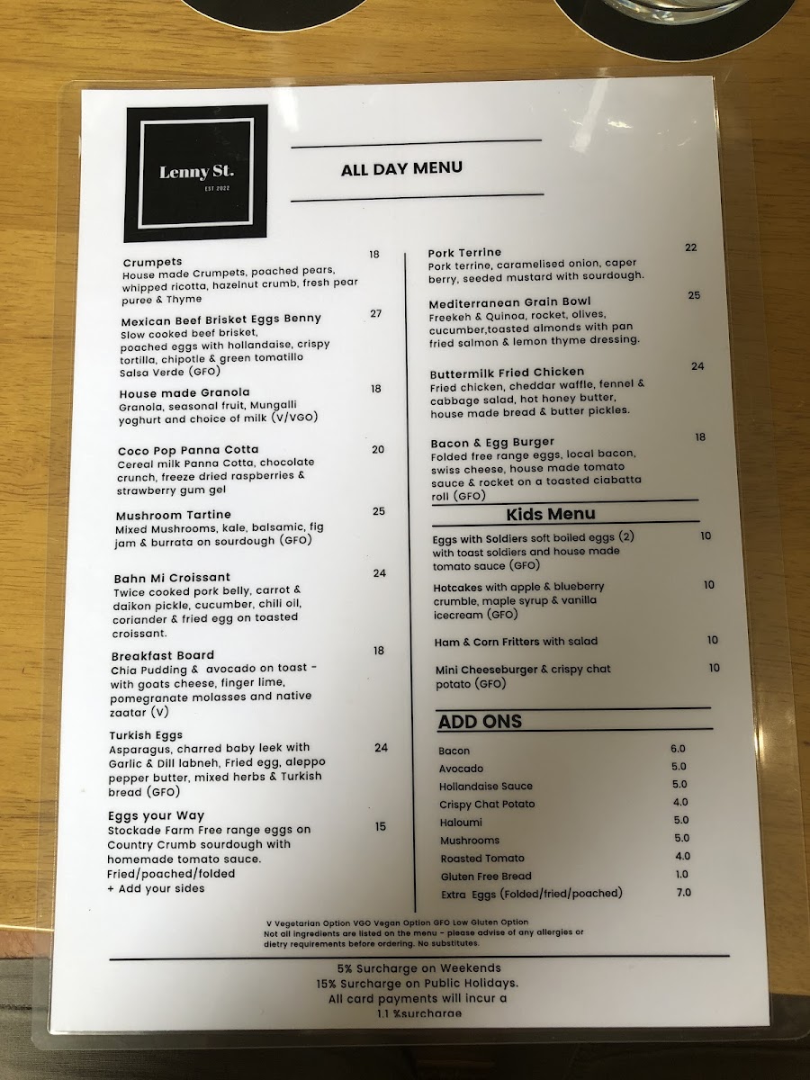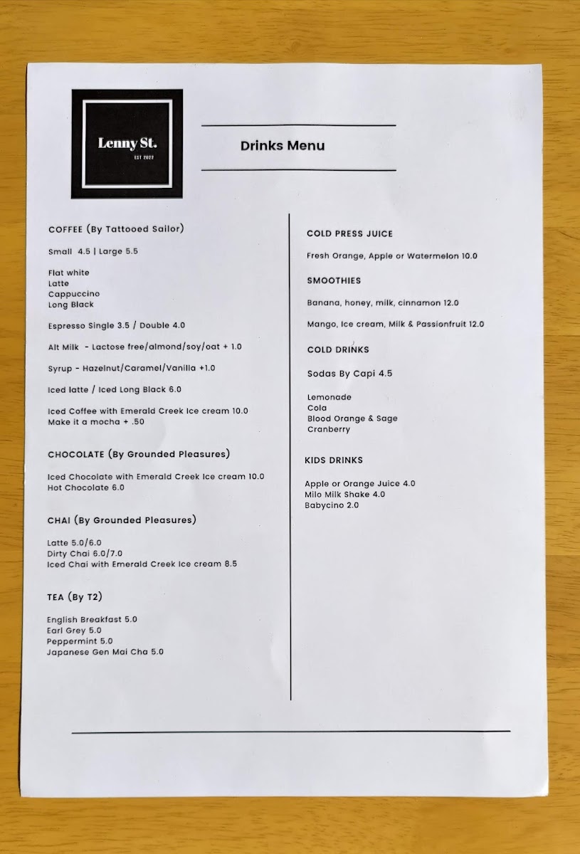 Lenny St. Menu